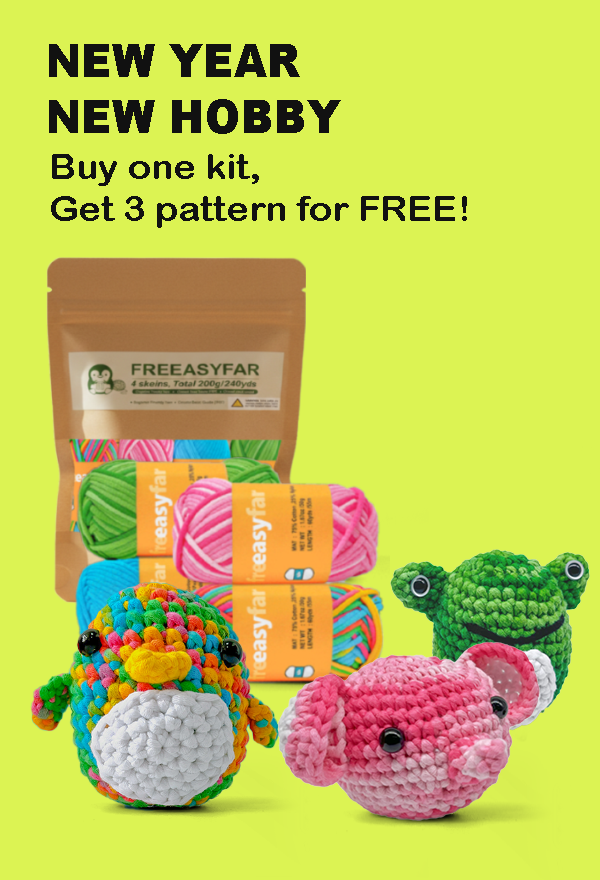 Beginner Crochet kit with Easy-to-See stitches Yarn, Included 3 free crochet pattern (Straw Pink+Lawn Green+Rainbow+Azure)