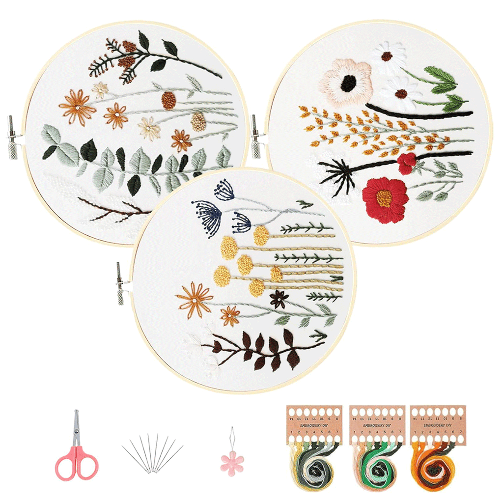 - ALL-INCLUSIVE EMBROIDERY KIT: Includes 3 patterned embroidery cloths, 6 embroidery needles, 3 instruction sheets, 3 packs of colored threads, and a 7.8-inch (20 cm) embroidery hoop. This kit makes it easy to embark on your embroidery journey.