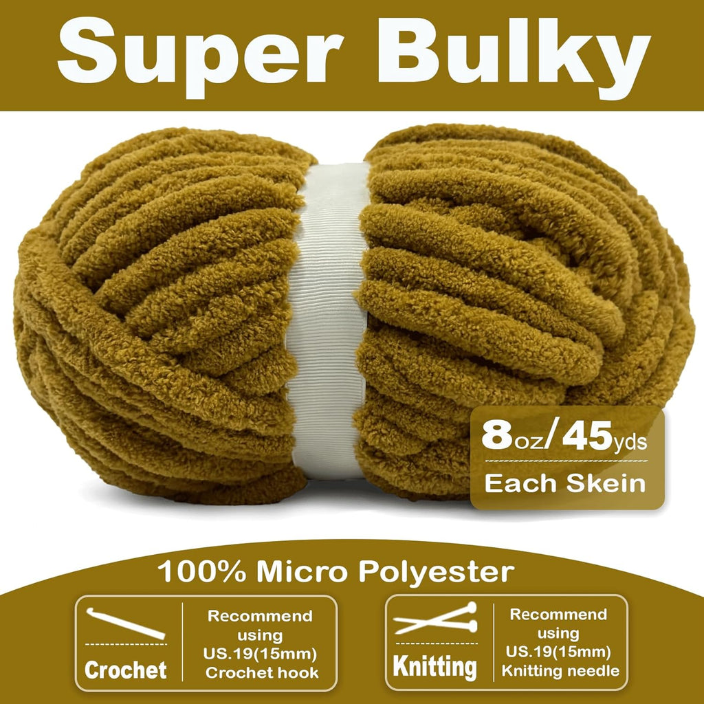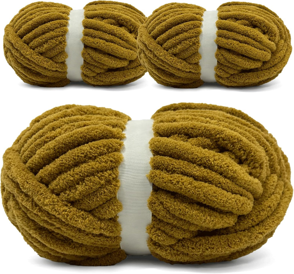 Chunky Chenille Yarn for Crocheting - Super Bulky Fluffy Yarn for Knitting -100% Polyester -Mustard Brown