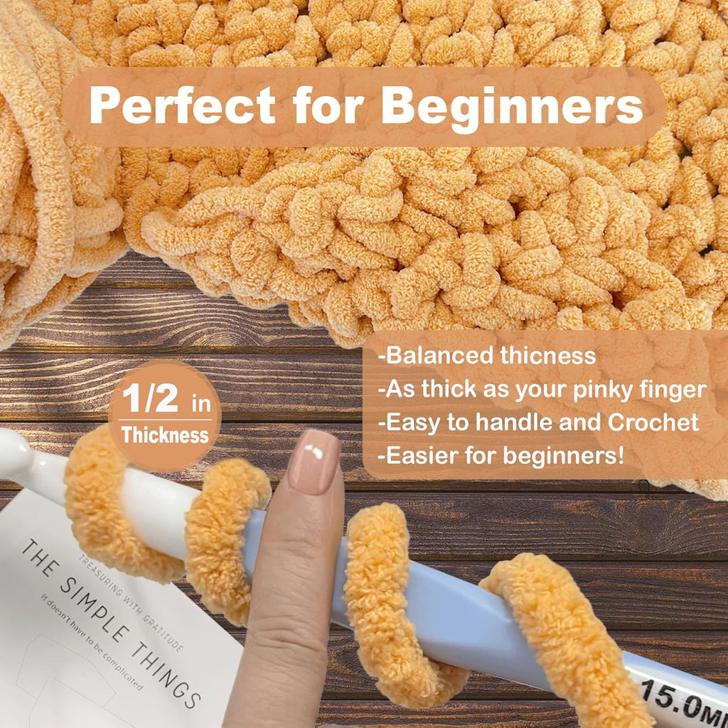 - Perfect Size for Versatile Crafting: Our chenille yarn is labeled as Jumbo #7 on the packaging, but based on user feedback, we describe it as Super Bulky #6 to better reflect its usage experience. With a thickness of about 1/2 inch, it is thicker than standard options and easier to handle than Jumbo size. Each skein weighs 8 ounces and measures 45 yards, making it ideal for crocheting, knitting, arm knitting, and crafting blankets, cushions, scarves, and more. Its balanced thickness makes it a great choice for various skill levels, allowing for stylish and durable projects year-round..