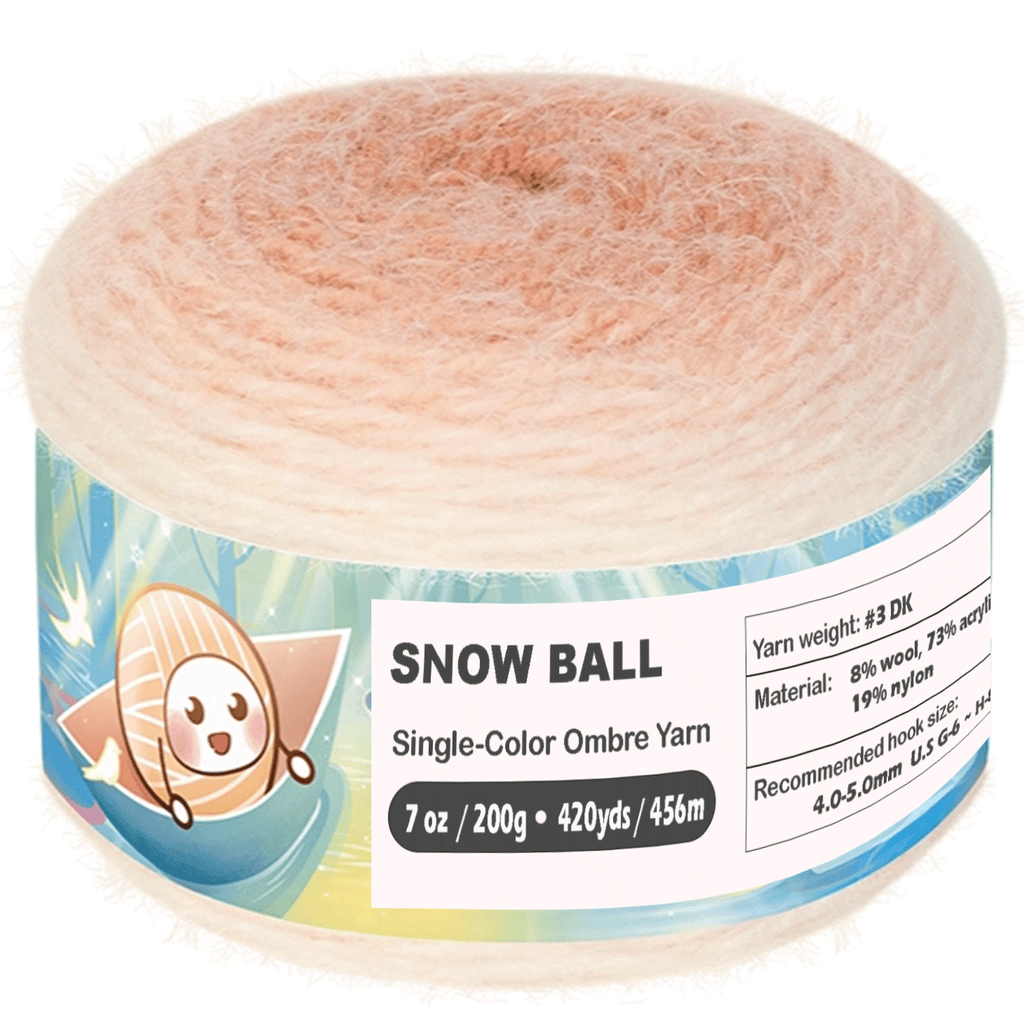 SNOW BALL Ombre Gradient Yarn for Knitting and Crochet, #3 DK Weight ,Acrylic Wool Blend, 200g/456m Cake Yarn(Peach Cream)
