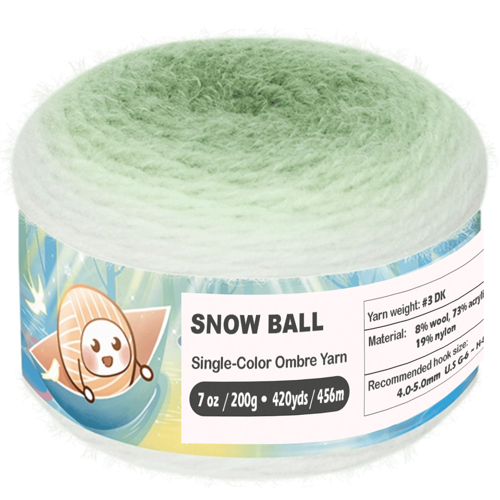 SNOW BALL Ombre Gradient Yarn for Knitting and Crochet, #3 DK Weight ,Acrylic Wool Blend, 200g/456m Cake Yarn (Sage Mist)