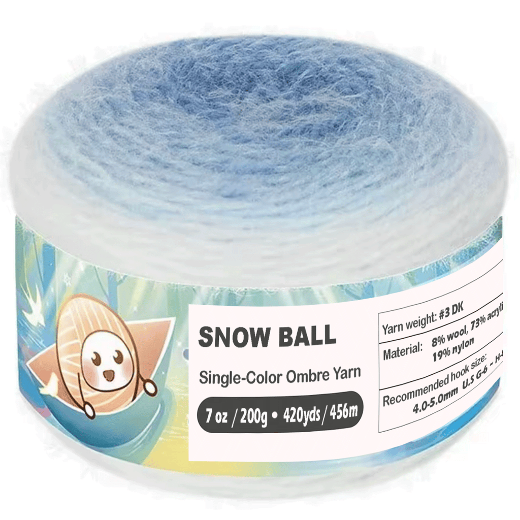 SNOW BALL Ombre Gradient Yarn for Knitting and Crochet, #3 DK Weight ,Acrylic Wool Blend, 200g/456m Cake Yarn (Sky Blue)